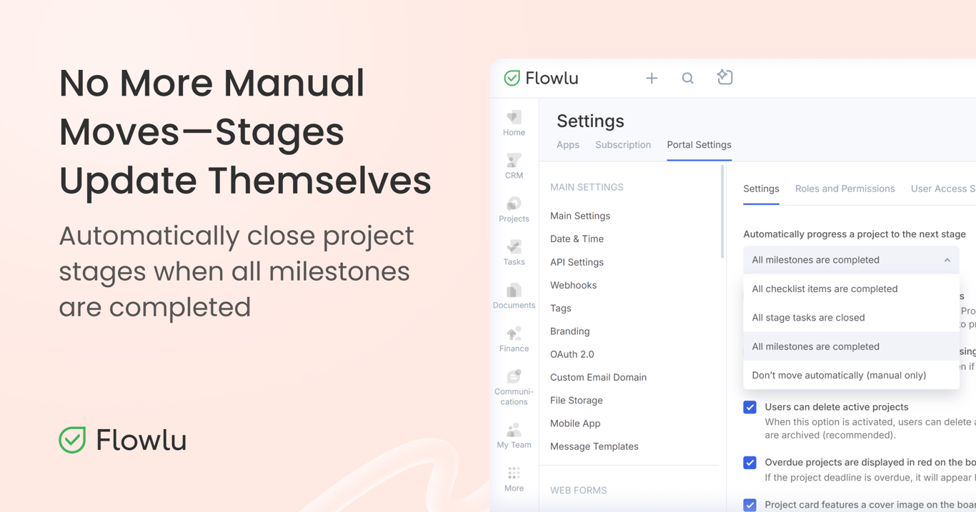 We’ve added a smart new automation to Flowlu Projects that helps you keep your stages tidy.