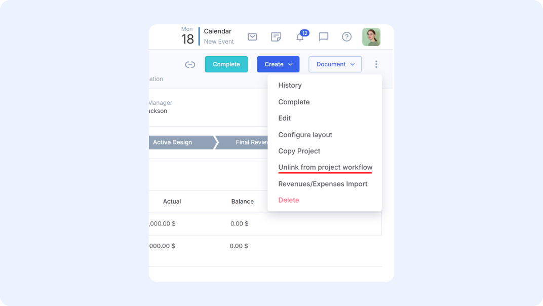 Unlinking is available to Project module administrators, project managers, and assistant managers.