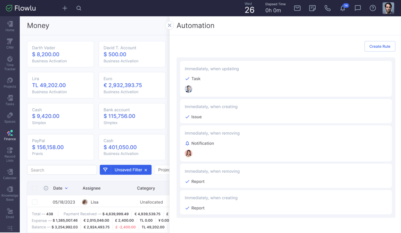💸 We’re always looking for the best ways to make financial management for our users smooth and streamlined. To make it easier, we added automations to the Money tab in our Finance module. From now on, you can decide what’s going to happen after the transaction is created, edited, or deleted.
