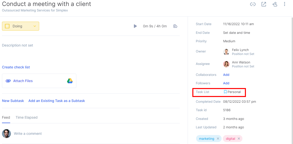 Formerly, you could link a task to the list from the task settings. But recently, we added this option to the right menu of the task, so you can easily select the list from the drop-down menu.