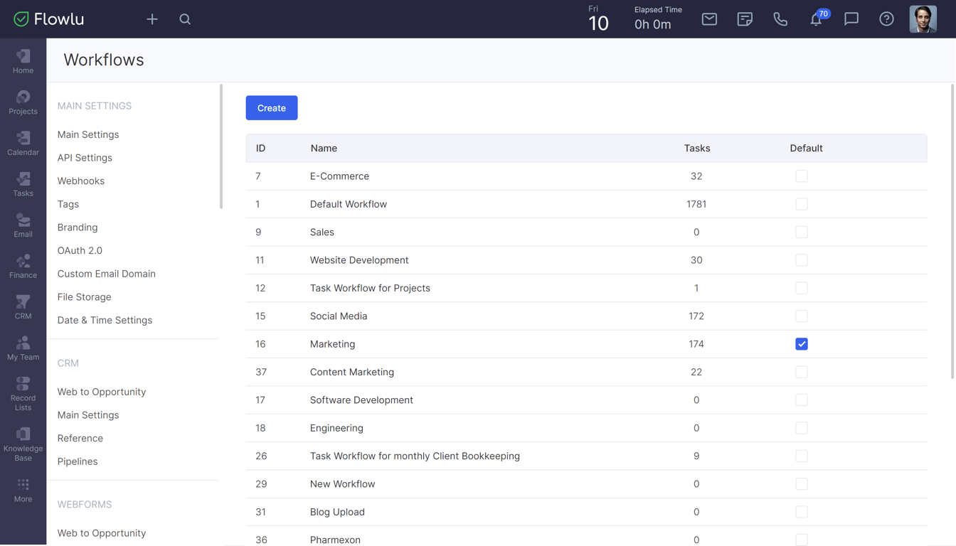 We also added a feature to set the workflow as the default. The default workflow will be automatically linked to new tasks and projects. If you set the default task workflow for a project, all the tasks inside the project will be linked to this workflow.