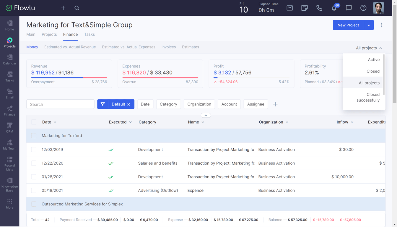 1) To easily monitor the finances of your projects inside the portfolio, we added a few filters. From now on, you can observe the finances of targeted projects: