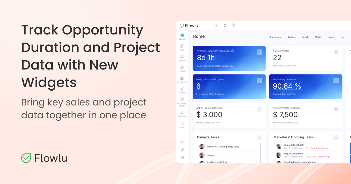 Experience seamless teamwork with Flowlu—log in and see what your teammates are collaborating on!