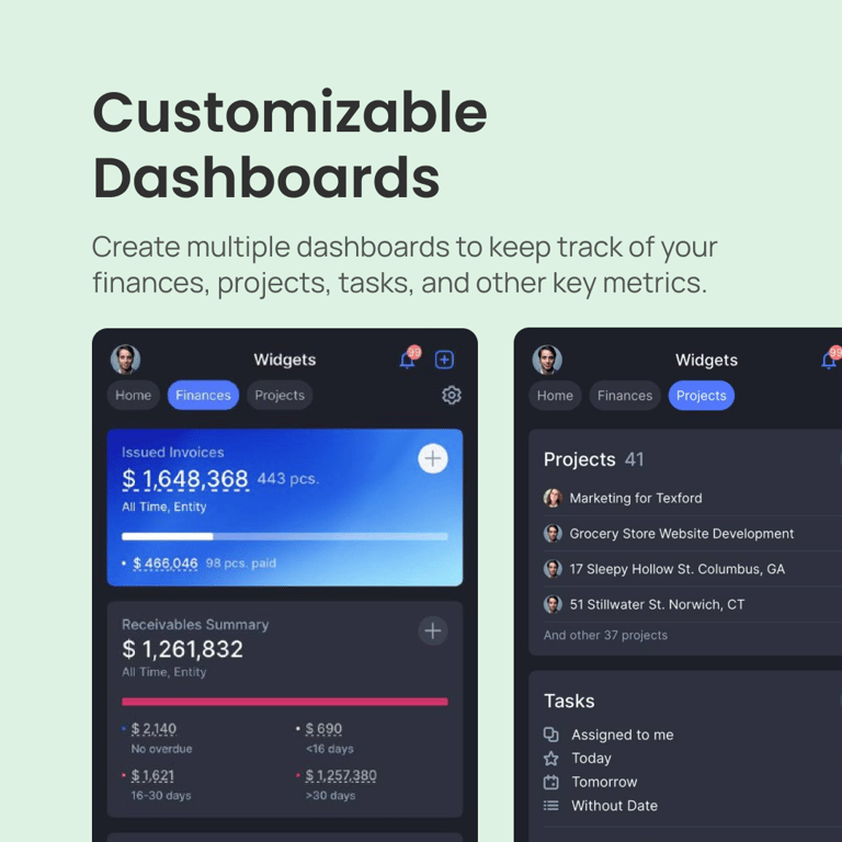 🔹From now on, you can add multiple dashboards to the home screens. For example, one dashboard can be related to your financial information, while another will show project-related details. You can simply add them by clicking the gear icon on the dashboard.